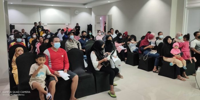 Pasien yang sudah terdaftar sebagai peserta operasi bibir sumbing gelaran Baznas Berau, melakukan daftar ulang di Hotel Melati, H Isa Tanjung Redeb, Kamis (26/5/2022) pagi. (foto Dimensinews)