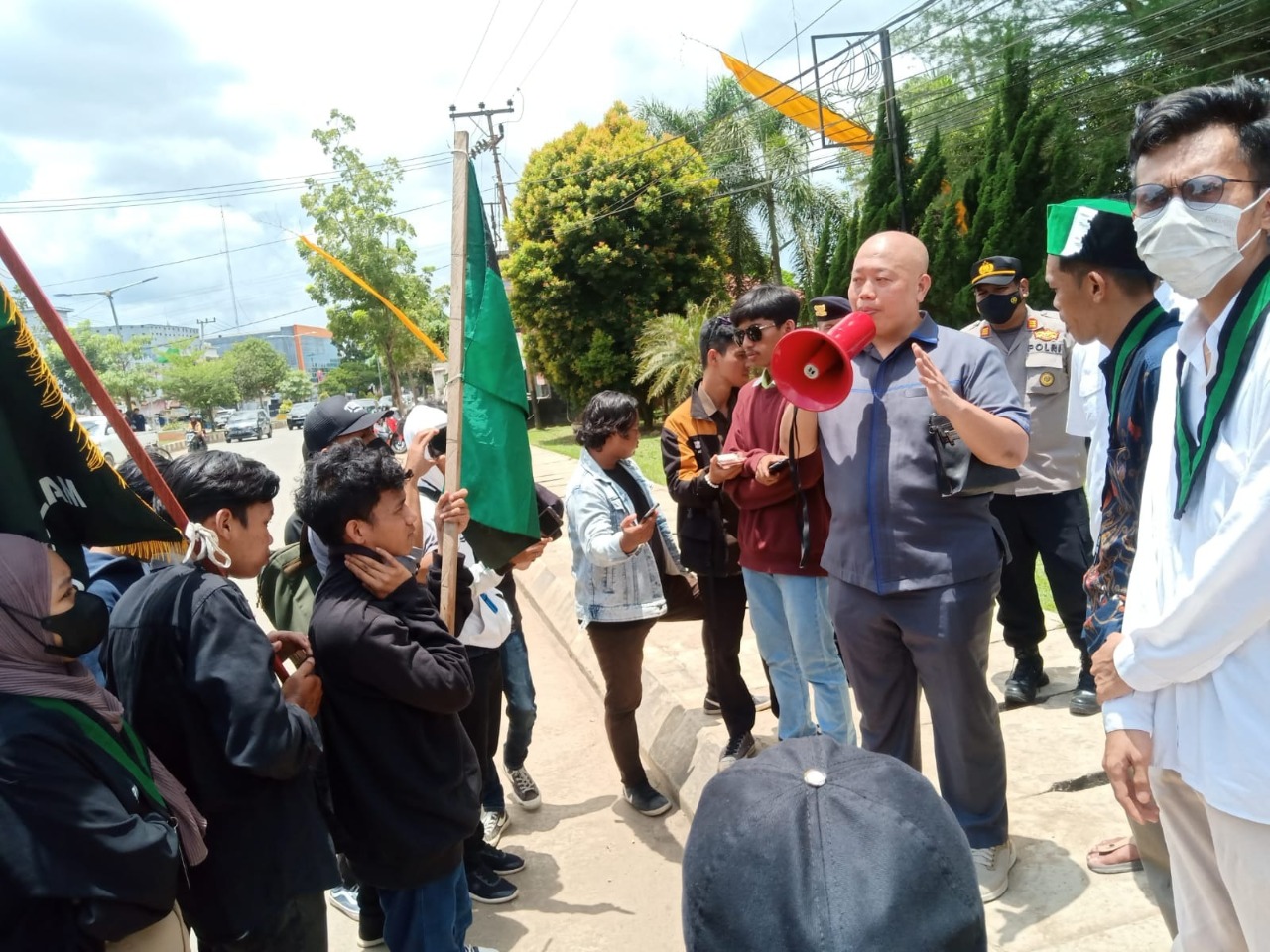 Anggota DPRD Berau, Wendy Lie Jaya menerima aksi demo HMI Berau. (Helda Mildiana/Dimensinews)