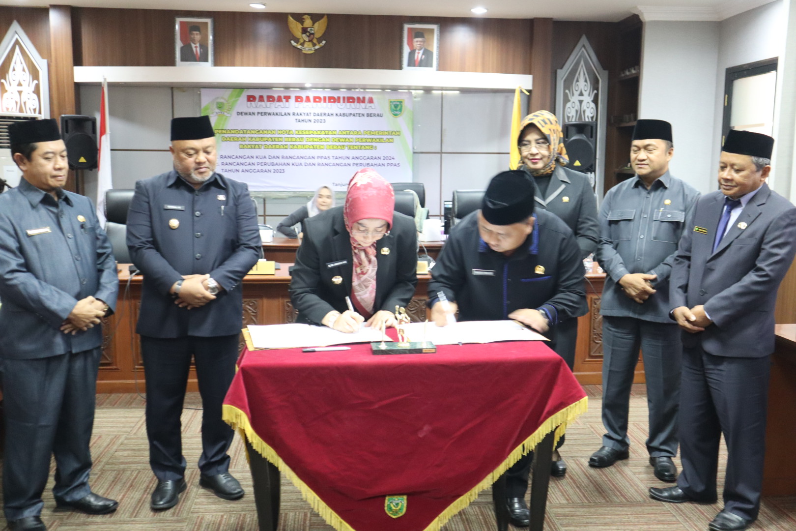 Pemerintah Kabupaten (Pemkab) Berau bersama Dewan Perwakilan Rakyat Daerah (DPRD) melakukan penandatanganan Kebijakan Umum Anggaran (KUA) dan Prioritas Plafon Anggaran Sementara (PPAS) tahun 2023, dengan kesepakatan di angka Rp 4 Triliun lebih.