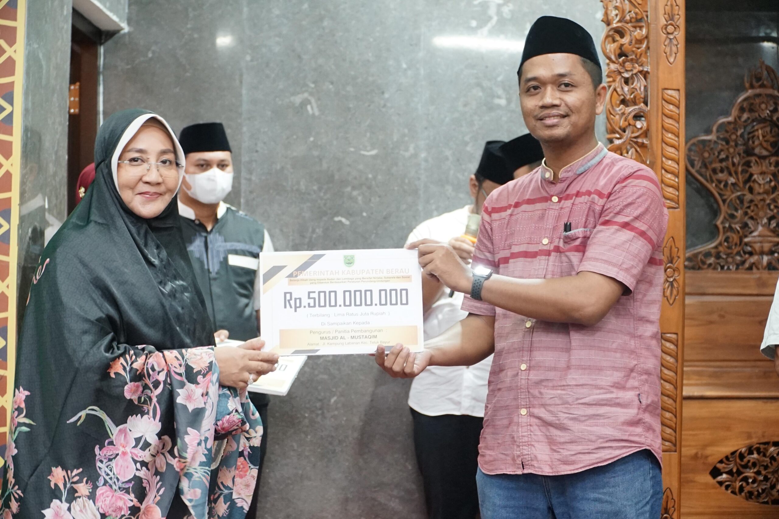 Bupati Berau, Sri Juniarsih kembali menyerahkan bantuan hibah kepada pengurus Masjid, Pondok Pesantren dan juga Rumah Ibadah Gereja di Kecamatan Teluk Bayur.