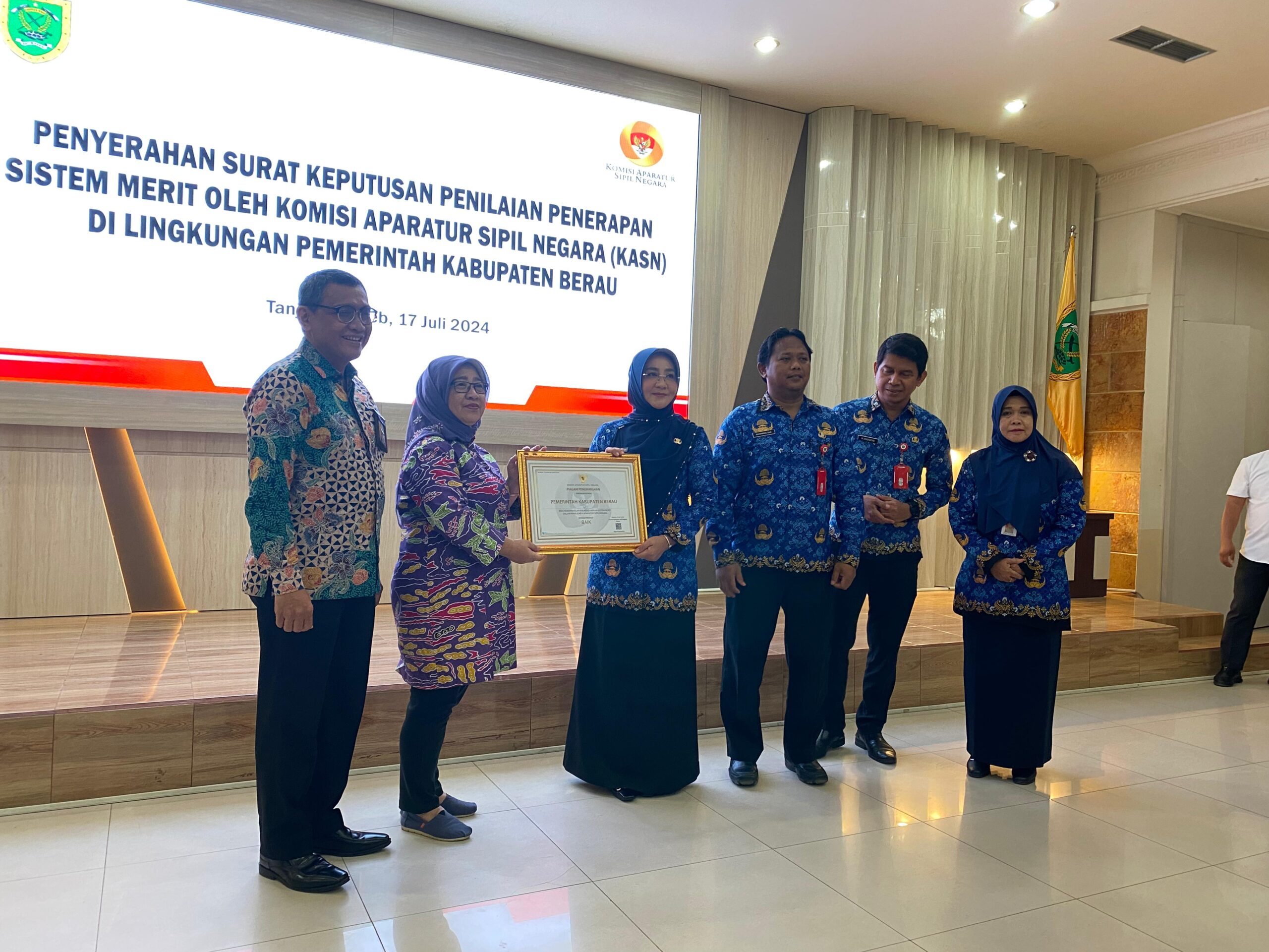 TANJUNG REDEB DIMENSINEWS -Saat memberikan sambutan pada acara penyerahan Surat Keputusan (SK) penilaian penerapan sistem merit oleh Komisi Aparatur Sipil Negara (KASN) di lingkungan pemerintah daerah, Bupati Berau Sri Juniarsih Mas meminta kepada seluruh Organisasi Perangkat Daerah (OPD) terkait dapat bekerja sama serta tingkatkan sinergitas