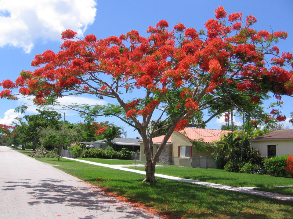 Pohon flamboyan memiliki karakteristik dan keunikan yang terpancar langsung pada sisi bunga dengan tekstur merah dan oranye.
