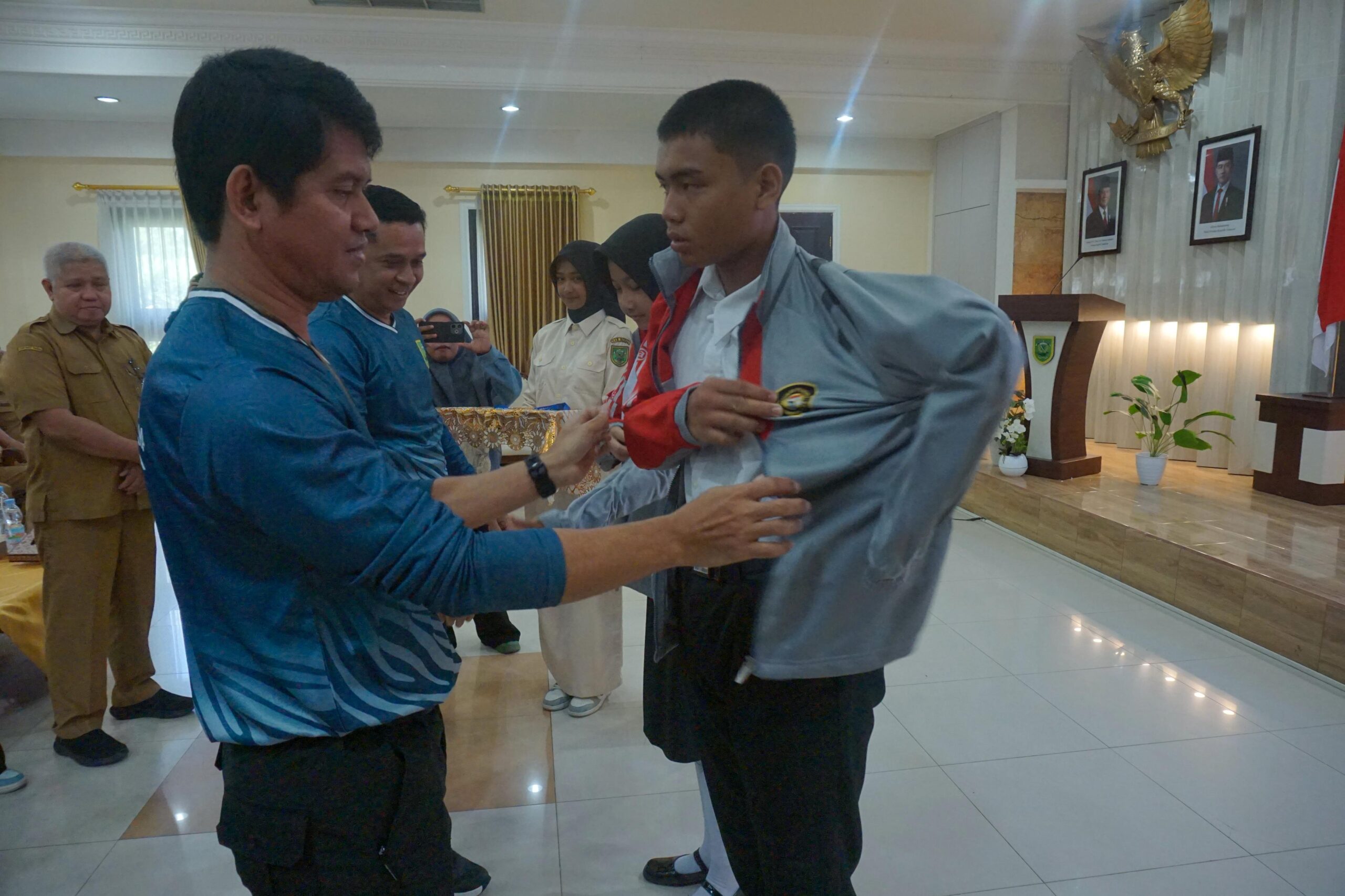 Prosesi pembukaan ditandai dengan pemasangan jaket dan ID Card kepada perwakilan peserta sebagai simbol dimulainya pemusatan latihan. Turut hadir dalam kegiatan ini Ketua DPRD Berau Dedy Okto Nooryanto, perwakilan Dandim 0902/BRU Kapt. Inf. Makin Effendi, perwakilan Polres Berau AKP Ridwan Lubis, jajaran OPD, serta kepala sekolah SMA/SMK se-Kabupaten Berau.