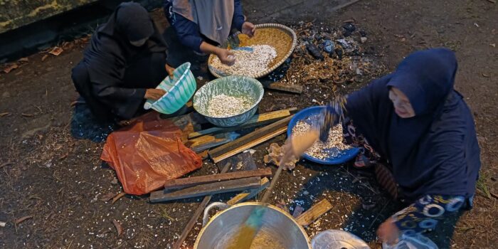 Warga di Kelurahan Gunung Tabur melaksanakan tradisi Maladdup yakni menyangrai padi ketan, pada pagi hari. foto dok Erson Susanto
