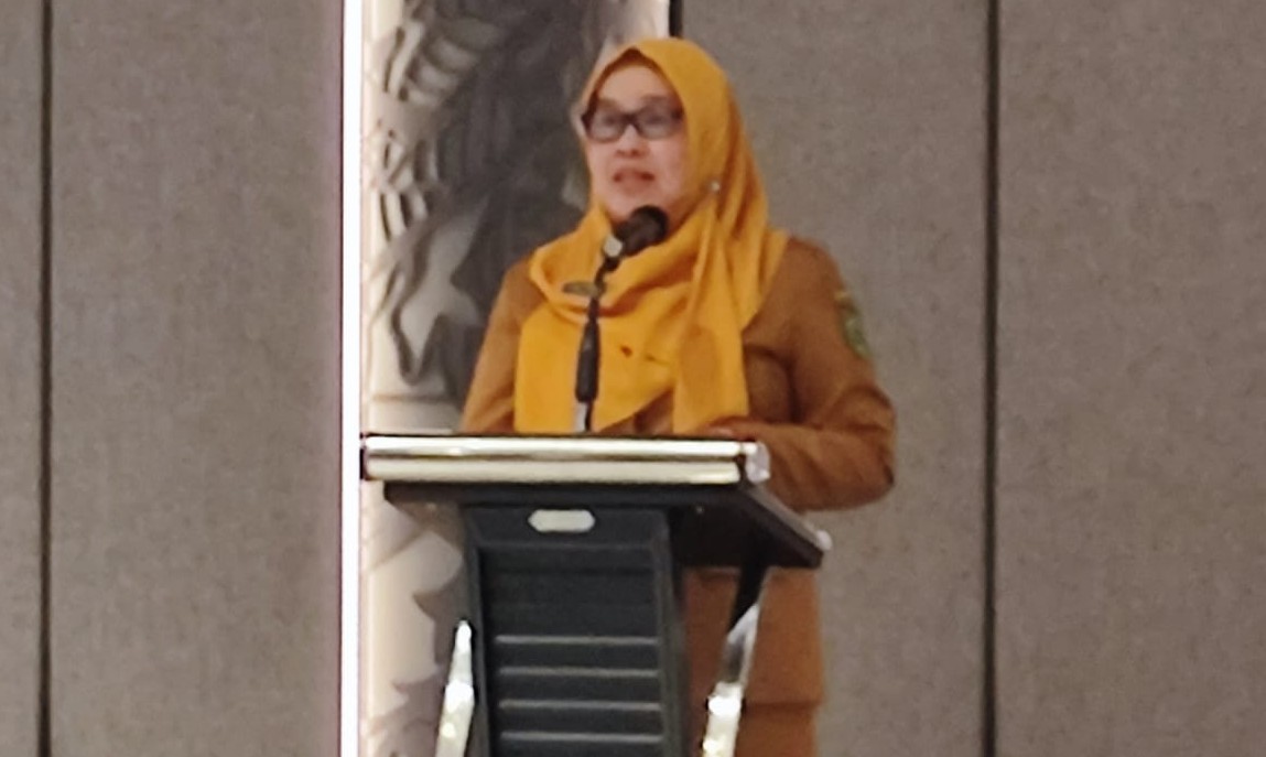 KADIS Koperindag Eva Yunita pada pembukaan Bimtek Koperasi Desa/Kelurahan Merah Putih (KDMP) se-Kabupaten Berau. Kegiatan yang digelar di Hotel Mercure, Jalan Murjani II, Tanjung Redeb, Senin (20/10/2025). foto dok Dimensinews.id