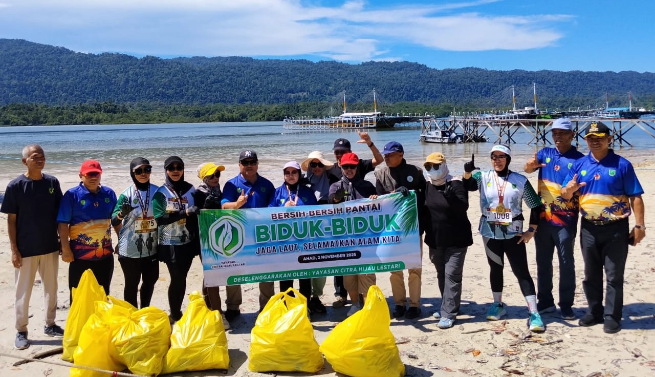 BIDUK-BIDUK, DIMENSINEWS– Wakil Bupati Berau, Gamalis, menyampaikan apresiasi dan dukungan penuh terhadap inisiatif bersih-bersih pantai yang digagas oleh Yayasan Citra Hijau Lestari (YCHL) bersama masyarakat di Pantai Teluk Sulaiman, Kecamatan Biduk-Biduk, pada Minggu (2/11/2025). Aksi ini merupakan rangkaian kegiatan yang dilaksanakan usai lomba lari Run10K Biduk-Biduk.