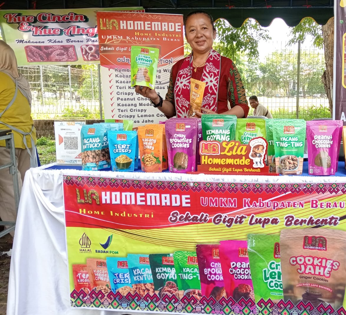 TANJUNG REDEB, DIMENSINEWS – Di antara deretan tenda UMKM Festival Kuliner Pangan Lokal 2025 yang digelar Dinas Pangan Kabupaten Berau, mata akan tertuju pada satu stan yang ramai, bertuliskan “Lia Homemade.” Di sana, pemiliknya menyambut setiap pengunjung dengan senyum hangat.