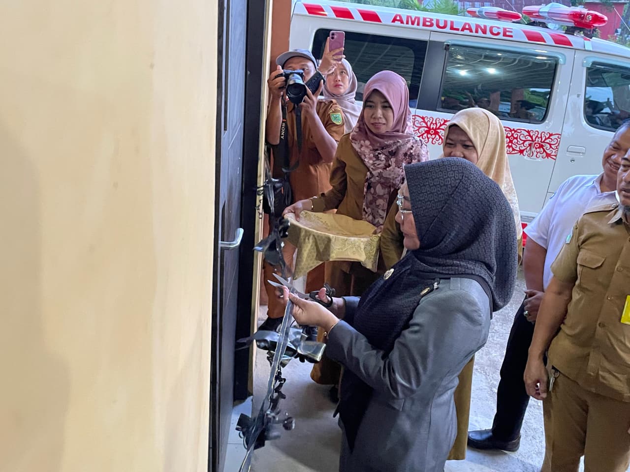 BUPATI Berau Sri Juniarsih Mas, mengunting pita, resmikan Puskesmas 24 Jam dan Pelayanan Persalinan. foto Toni Arman Dimensinews.id