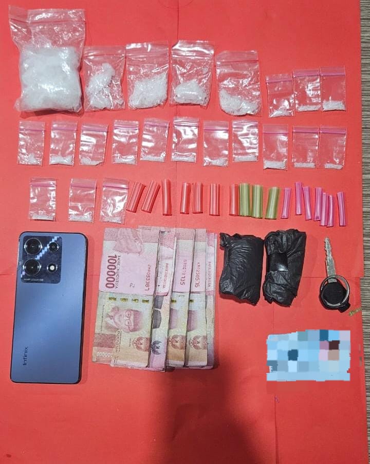 “Total berat bruto sabu yang kami sita mencapai 73,30 gram. Jumlah ini menguatkan dugaan bahwa tersangka berperan aktif sebagai pengedar, bukan sekadar pengguna,” tambah Kasat Resnarkoba.
