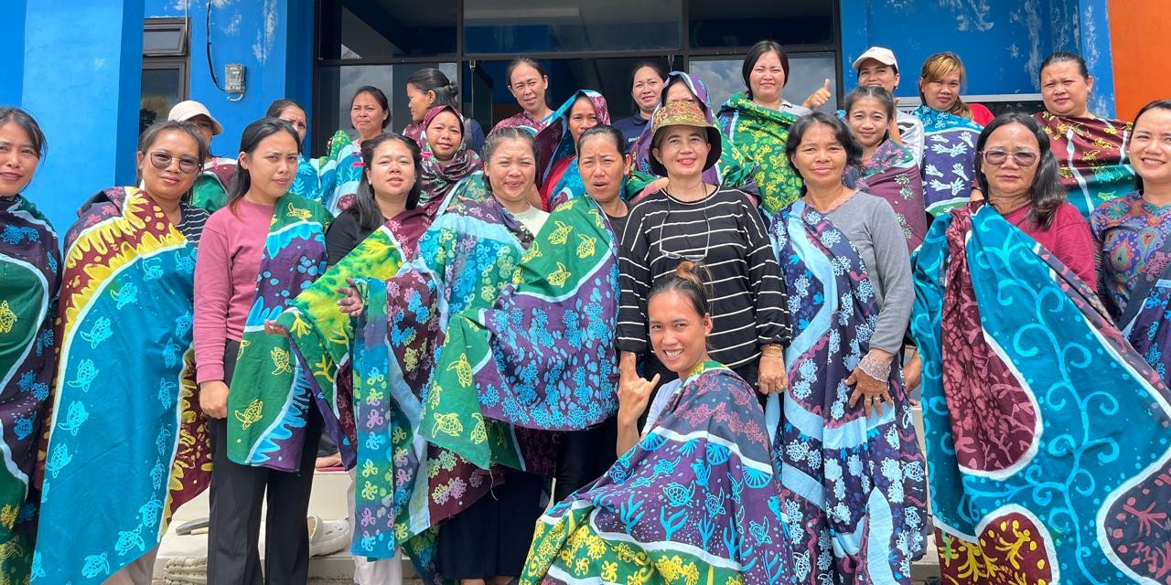 MEMBATIK dengan motif lokal, di Kampung Merasa Kabupaten Berau Kalimatan Timur. foto Yuli Batik Uin