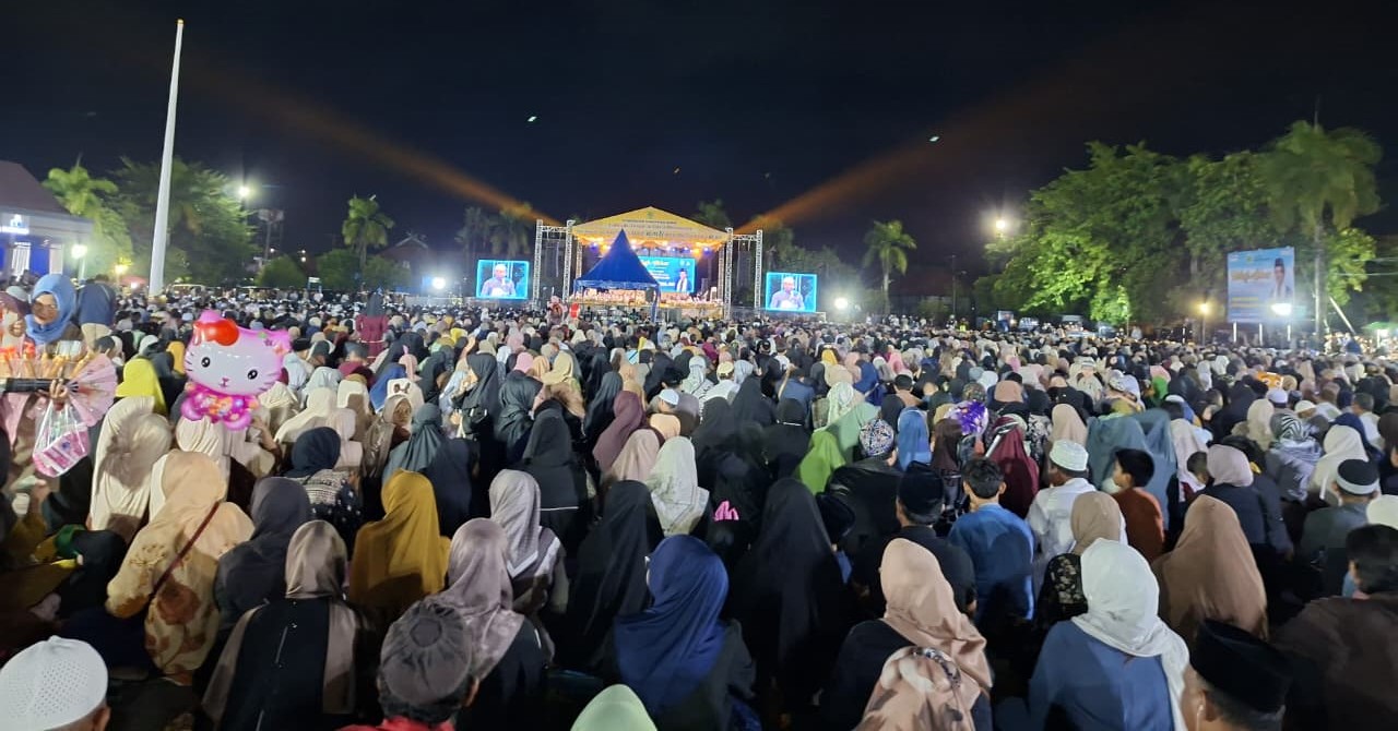 RIBUAN masyarakat membanjiri Lapangan Pemuda Tanjung Redeb untuk menghadiri tablig akbar dan doa bersama dalam rangka Hari Jadi ke-72 Kabupaten Berau dan HUT ke-215 Kota Tanjung Redeb, menghadirkan penceramah terkemuka UAS. foto Toni Arman Dimensinews.id