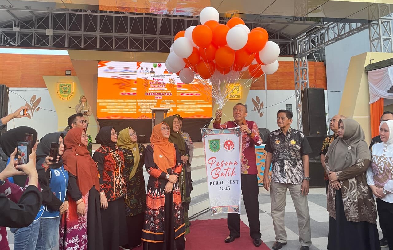 TANJUNG REDEB, DIMENSINEWS – Bupati Berau, Sri Juniarsih Mas, membuka Dewan Kerajinan Nasional Daerah (Dekranasda) Expo di Panggung Barintak Tepian Ahmad Yani, Tanjung Redeb, pada Sabtu (22/11/2025). Pembukaan pameran ini menjadi bagian penting dari rangkaian acara Festival Pesona Batik Berau 2025, yang bertujuan mempromosikan wastra lokal dan produk Usaha Mikro, Kecil, dan Menengah (UMKM).