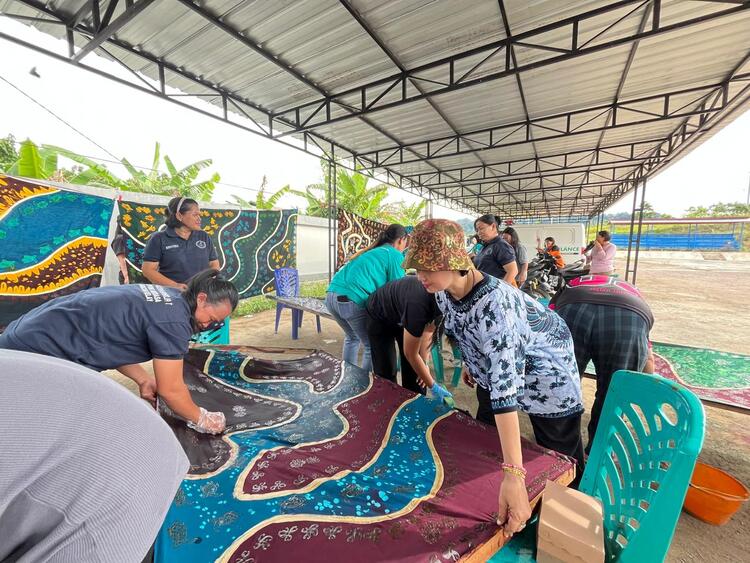 Emak-Emak Kampung Merasa Dilatih Bikin Batik Motif Cokelat, Plus Sulam Sashiko Jepang!