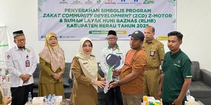 TANJUNG REDEB, DIMENSINEWS – Sebuah angin segar berhembus bagi para pelaku Usaha Mikro Kecil dan Menengah (UMKM) serta masyarakat kurang mampu di Kabupaten Berau. Pemerintah Kabupaten (Pemkab) Berau melalui Badan Amil Zakat Nasional (Baznas) setempat, secara simbolis menyerahkan bantuan program Zakat Community Development (ZCD) berupa Z-Motor (motor gerobak) dan Rumah Layak Huni Baznas (RLHB) tahun 2025.