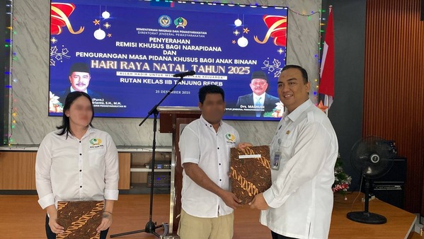 Penyerahan Remisi Khusus Hari Raya Natal dilaksanakan langsung oleh Kepala Rutan Negara Kelas IIB Tanjung Redeb dan disaksikan oleh perwakilan warga binaan penerima remisi, serta pejabat struktural dan petugas Rutan setempat.