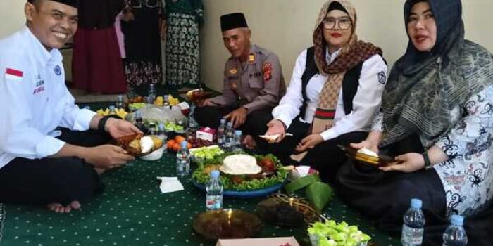 Ridwan Pimpinan Panti Asuhan bersama Nur, ketua TRC PPA Jeny, Kasat Bimmas AKP Agus Supriyanto usai potong tumpeng peresmian. foto Helda Mildiana Dimensinews.id