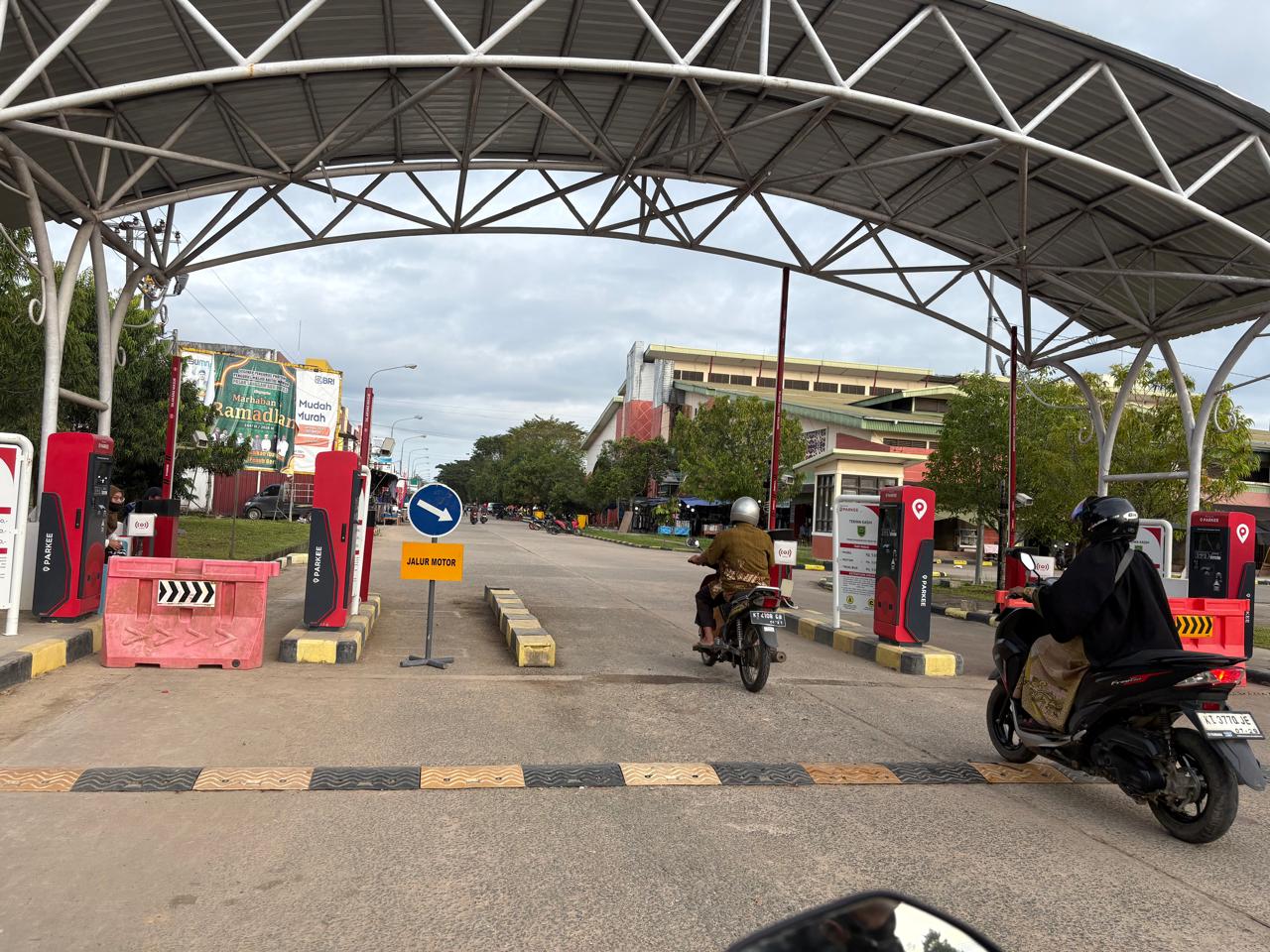 Portal parkir elektronik di Pasar Sanggam Adji Dilayas. Foto Helda Mildiana Dimensinews.id