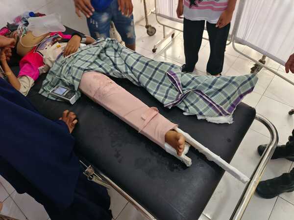 Pukul 14.00 WITA: Karena kondisi luka yang cukup serius dan perlunya penanganan spesialis, korban dirujuk ke RSUD dr. Abdul Rivai Tanjung Redeb.