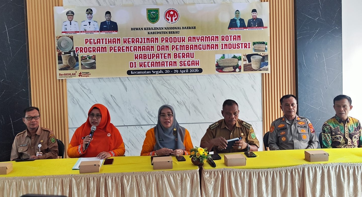 TANJUNG REDEB, DIMENSINEWS – Pemerintah Kabupaten Berau melalui Dinas Koperasi, Perindustrian, dan Perdagangan (Diskoperindag) bersinergi dengan Dekranasda menggelar pelatihan kerajinan anyaman rotan di Kecamatan Segah. Kegiatan yang berpusat di Kantor BKKBN Segah ini dijadwalkan berlangsung selama sepuluh hari, mulai 20 hingga 29 April 2026.